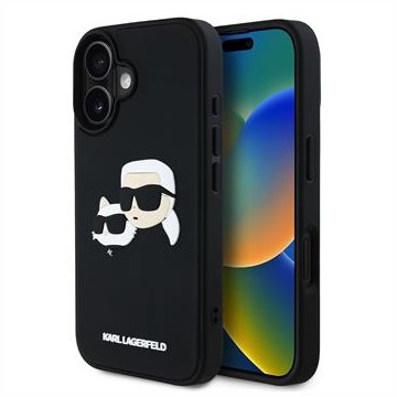 Karl Lagerfeld 3D Rubber Double Heads Zadní Kryt pro iPhone 16 Black