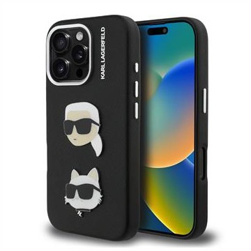 Karl Lagerfeld Grained PU K&CH Heads Zadní Kryt pro iPhone 16 Pro Black