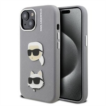 Karl Lagerfeld Grained PU K&CH Heads Zadní Kryt pro iPhone 15 Grey