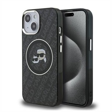 Karl Lagerfeld IML K&CH Heads Repeated Logo MagSafe Zadní Kryt pro iPhone 15 Black