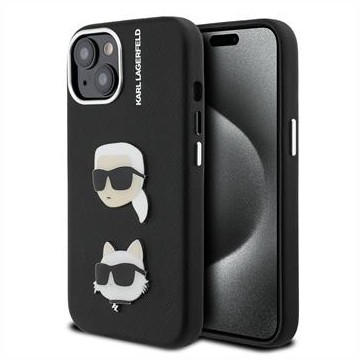 Karl Lagerfeld Grained PU K&CH Heads Zadní Kryt pro iPhone 15 Black