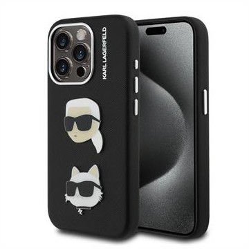 Karl Lagerfeld Grained PU K&CH Heads Zadní Kryt pro iPhone 15 Pro Max Black
