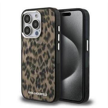 Karl Lagerfeld IML Leopard MagSafe Zadní Kryt pro iPhone 15 Pro Max Brown