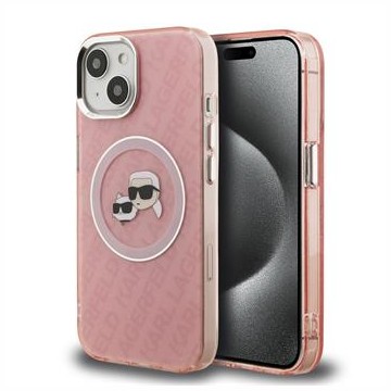 Karl Lagerfeld IML K&CH Heads Repeated Logo MagSafe Zadní Kryt pro iPhone 15 Pink