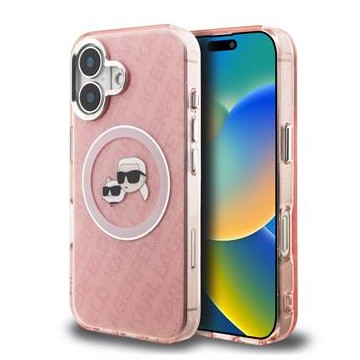 Karl Lagerfeld IML K&CH Heads Repeated Logo MagSafe Zadní Kryt pro iPhone 16 Pink