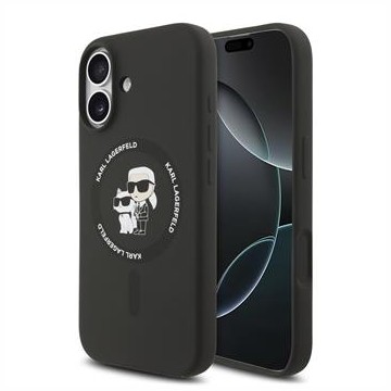 Karl Lagerfeld Liquid Silicone Karl and Choupette MagSafe Zadní Kryt pro iPhone 17 Black
