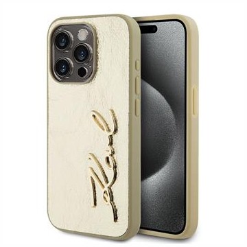 Karl Lagerfeld Wrinkled PU Signature Logo Zadní Kryt pro iPhone 15 Pro Gold