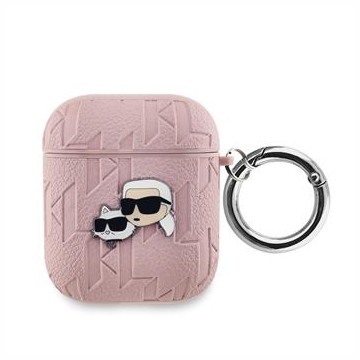 Karl Lagerfeld PU Embossed Karl and Choupette Heads Pouzdro pro AirPods 1/2 Pink