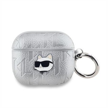 Karl Lagerfeld PU Embossed Choupette Head Pouzdro pro AirPods Pro 2 Silver